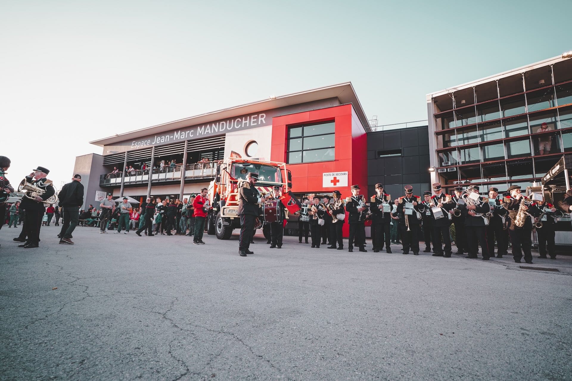 Plus de 200 sapeurs venus des 59 centres de secours du département de l’Ain, mais aussi des pupilles du département et leur famille, une grande fanfare des sapeurs pompiers ainsi que le bus de la fédération étaient présents au stade Charles-Mathon.